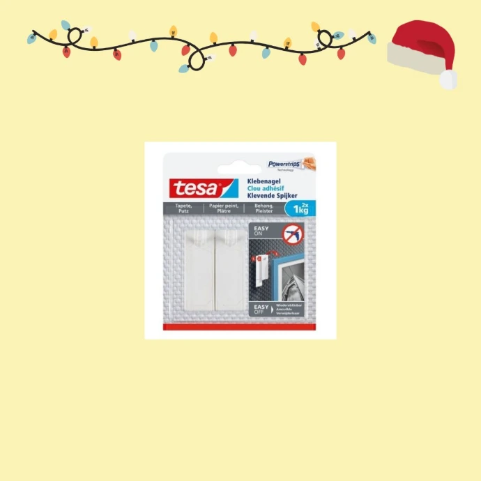 Een haakje dat je kan vastkleven. Volgens het pakje kan je het ook weer verwijderen...