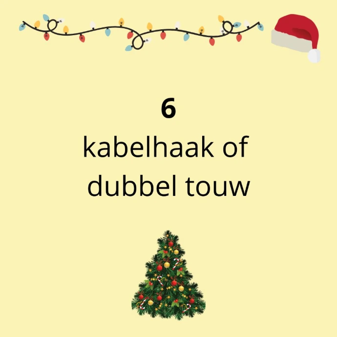 Kabelhaak of dubbeltouw of zipnhang bestaat uit 2 touwtjes die je links en rechts over de bovenhoek van je deur hangt. Ze komen samen in het haakje.